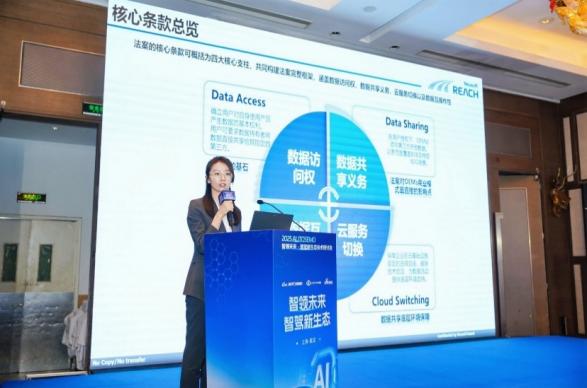 在欧洲数据法案解读环节,中汽研欧洲公司数据专家孟子安深度解析了《数据法案》核心条款,建议中国车企通过布局欧洲本地数据中介,实现合规与生态构建双赢;东软睿驰高级咨询顾问宋思蒙梳理了法案对汽车软件行业的影响,呼吁加快国内汽车数据标准体系建设,构建“中国汽车数据共同体”,走出本土化标准发展之路。