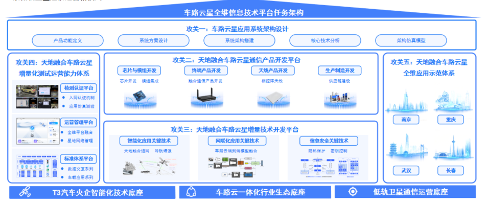 司胜营介绍,中汽创智聚焦全时在线、全域覆盖等核心目标,整合多系统单元破解行业痛点,以“车为终端、地基为延伸、云为中枢、星基为链接”提供无死角出行服务。平台核心“两纵五横”架构,实现存量兼容与技术跃迁,打通人、车、路、云、星全维度协同。